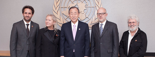 De gauche à droite, Romain Troublé (Directeur général de la Fondation), Agnès Troublé dite agnès b. (Styliste, fondatrice et mécène de Tara), Ban Ki-moon (Secrétaire Général des Nations unies), Etienne Bourgois (Président de la Fondation et Directeur général d’agnès b.), et Eric Karsenti (Directeur de recherche EMBL / CNRS, directeur scientifique de l’expédition Tara Oceans).