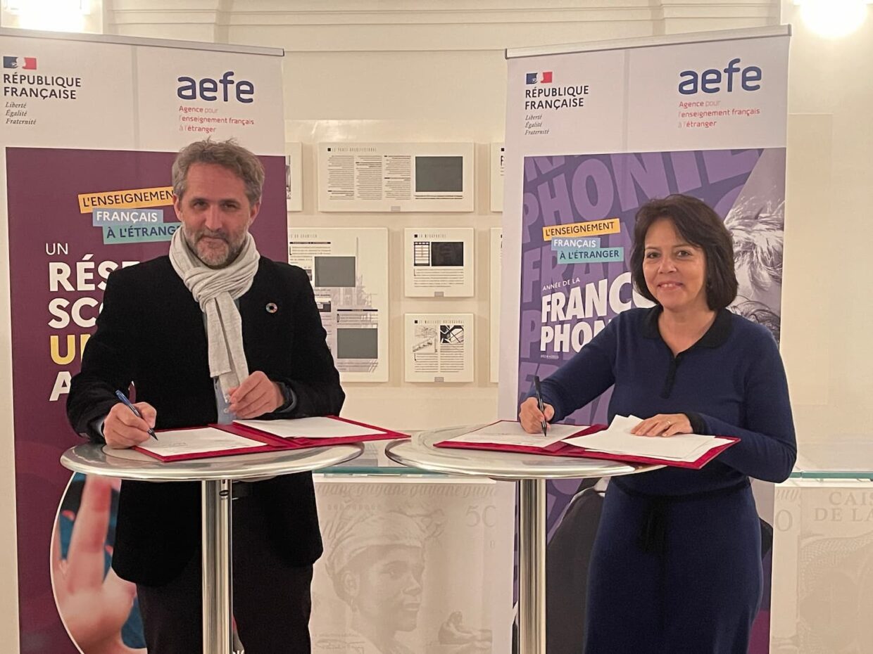 Claudia Scherer-Effosse, directrice générale de l’AEFE – Agence pour l’enseignement français à l’étranger – et Romain Troublé, Directeur général de la Fondation Tara Océan, se sont retrouvés ce 21 novembre pour signer le renouvellement de leur convention de partenariat pour quatre nouvelles années.