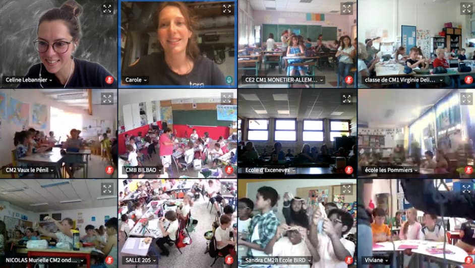 Quant aux élèves de primaire (et début collège), ils ne sont pas en reste puisque 24 000 d’entre eux ont voyagé (virtuellement) à bord de leur navire pour étudier les enjeux de développement durable dans le monde, avec l’opération Echos d’Escale. En cette fin d’année, ils ont partagé avec d’autres camarades de France, d’Espagne, d’Angleterre ou de Madagascar, le fruit de leur expédition virtuelle sous forme de chanson, vidéo, jeu etc… C’était l’occasion aussi d’échanger avec des membres d’équipage de la goélette Tara, en direct du nord de l’Europe, et de se former en leur compagnie à la réalisation des manœuvres de voile !